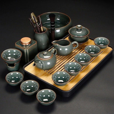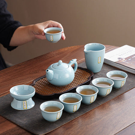 Using Ru kiln firing process, porcelain texture is hard, solid body. The moon white Ru Kiln tea set is warm in color, simple and...