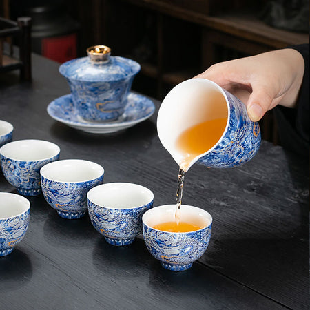 Jingdezhen eight treasures tea bowl set