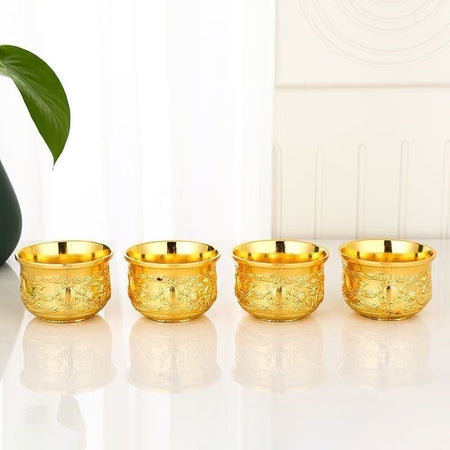 High-end gilded Vietnamese sand gold tea set Chinese-style set 1 tray, 1 pot, 4 cups, gold-plated tea cups, an excellent gift for making tea