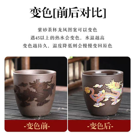 Purple clay changes color when heated, with dragons and phoenixes dancing. High-end master cups, couple cups, kung fu tea sets, tasting cups, and personal cups
